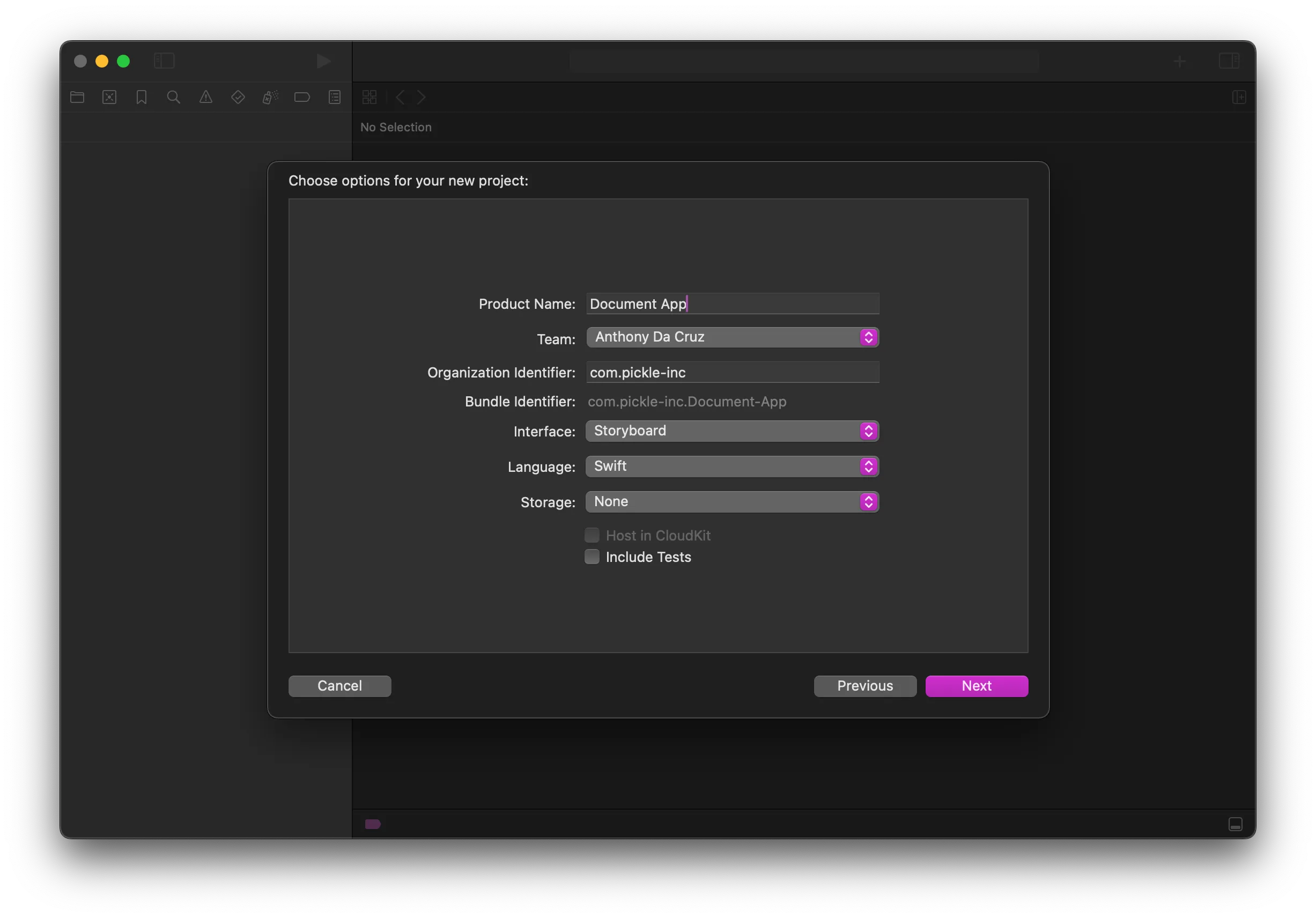 Créer un projet XCode simple nommé “Document App” (et pas le template “Document App”)