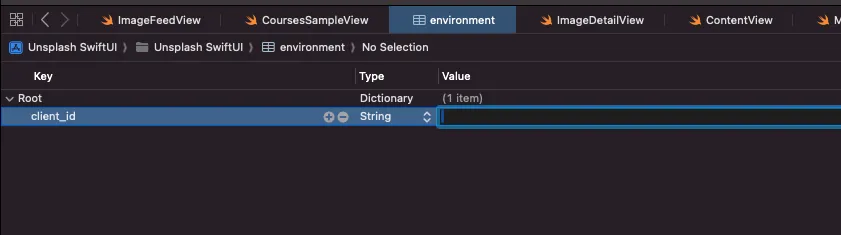 environment.plist avec Xcodeclient_id avec votre clé d’API en valeur.