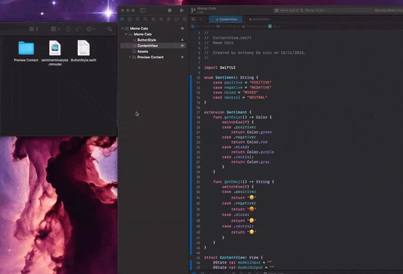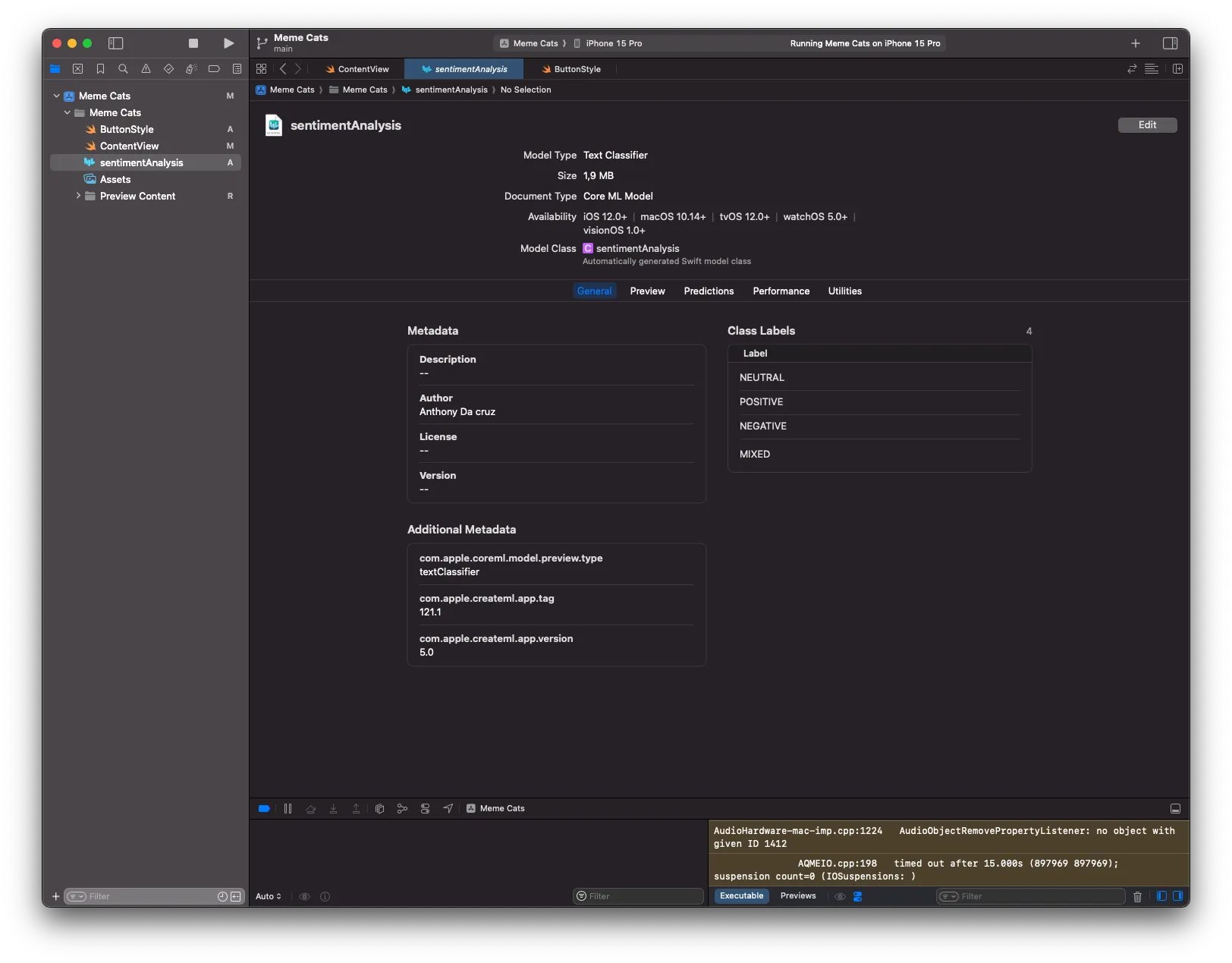 Reprenez le fichier SentimentAnalysis.mlmodel que vous avez créé avec CreateML (lors de cette étape) et glissez le dans la structure de votre projet Xcode.