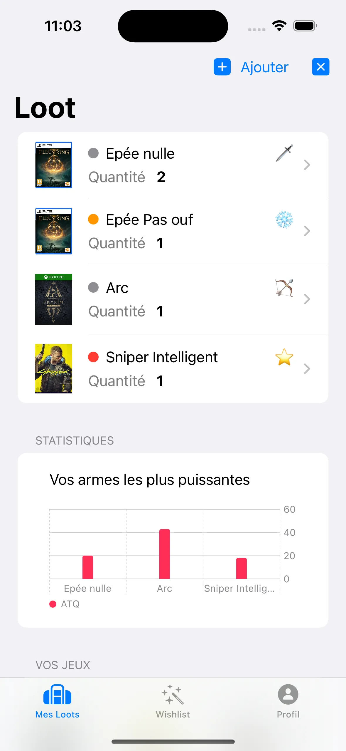 Pour l’instant la vue WishList et la vue Profil seront vides.